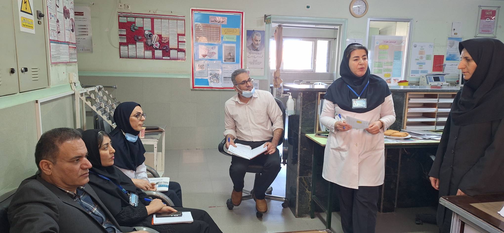 بازدید مدیر بیمارستان به همراه تیم مدیریتی ایمنی بیمار بر اساس گفتمان حضوری و سوالات باز مربوط به وضعیت ایمنی بیمار و مخاطرات سیستمی موجود ، با کارکنان بخشهای جراحی زنان و دیالیزانجام گردید و مشکلات مورد بررسی قرار گرفت.